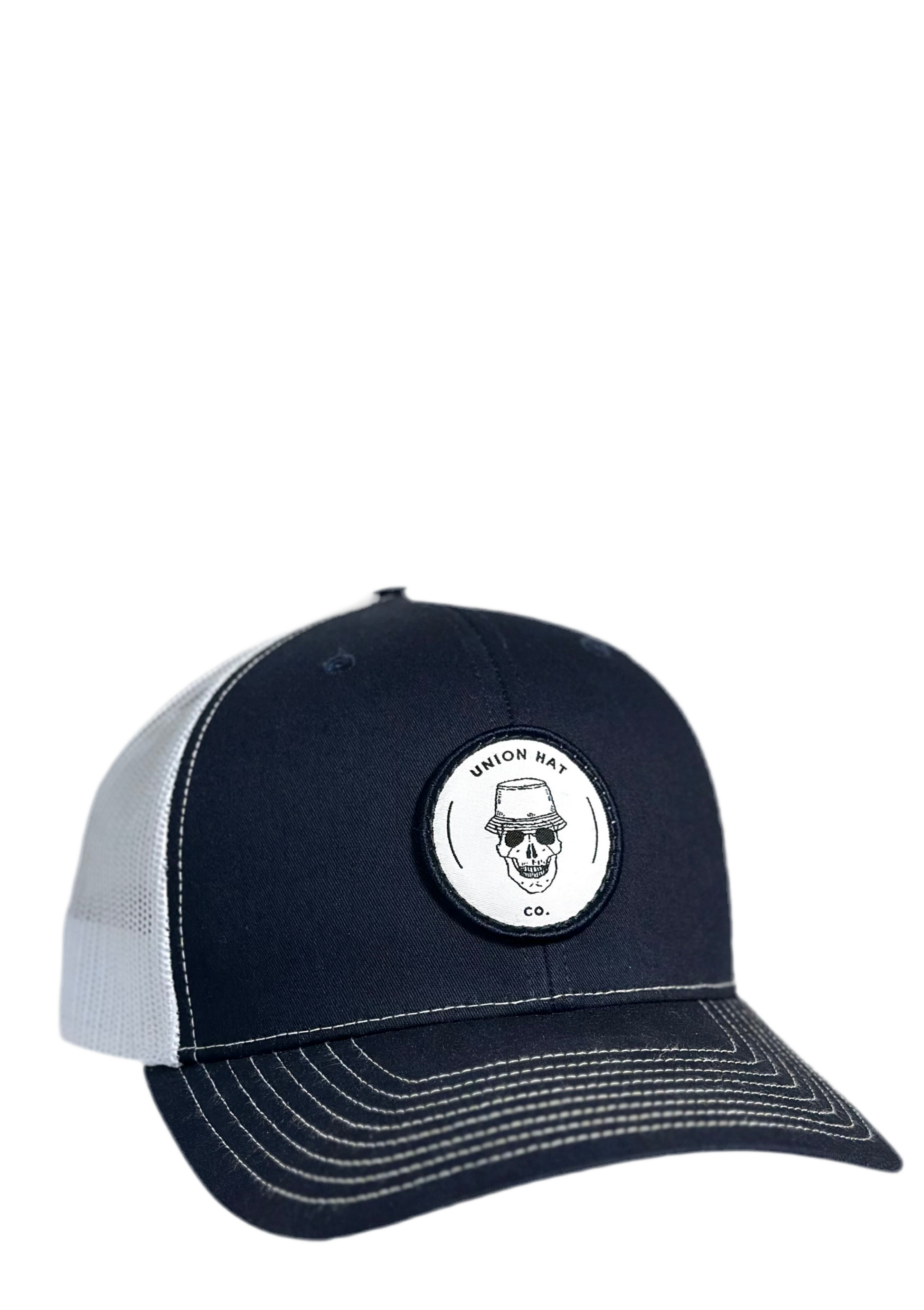 Navy Blue, Richardson Original 112 Trucker Adjustable Hat with Union Hat Co. logo patch on front.